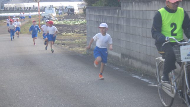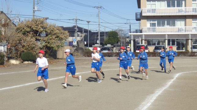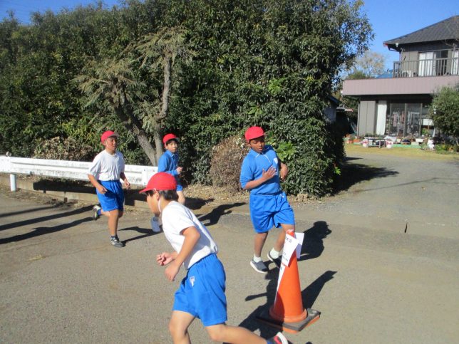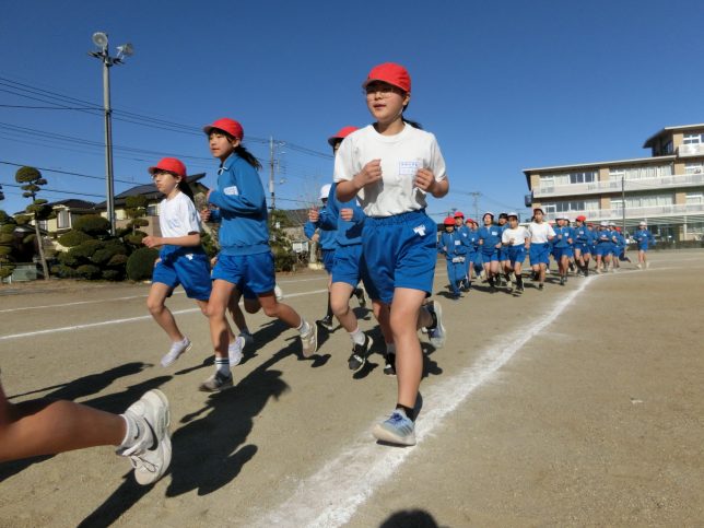 インフルエンザで学級閉鎖の2年生を除く学年・ブロックで持久走大会を実施しました。今年から3年生~6年生までは、男女別での走りです。業間マラソンへの取組やお家での練習が成果となり、タイムが昨年より上がりました。どの児童も一生懸命走ることができました!