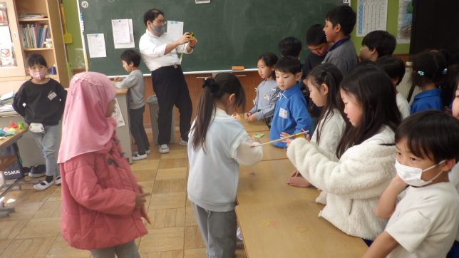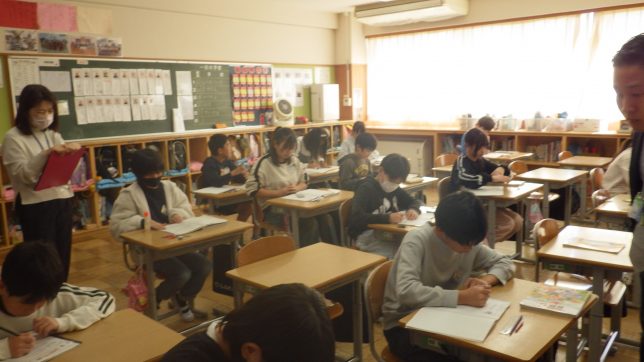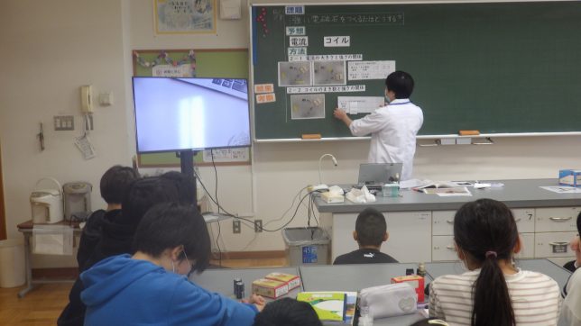 5年2組で、算数と理科の研究授業がありました。算数は割合、理科は電磁石の単元です。どちらも難しい内容ですが、子ども達は集中して授業に取り組んでいました。