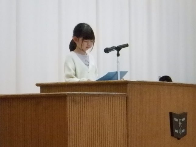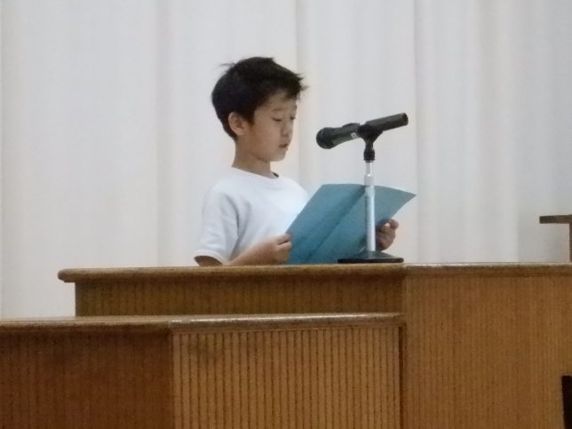 前期の終業式がありました。落ち着いた態度で式に集中していました。作文発表も堂々とできました。どの学年も、きちんとしていました。