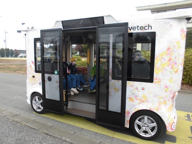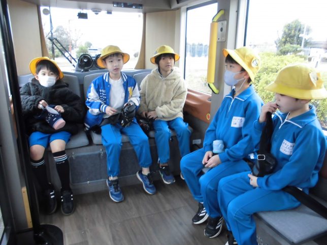 2/24自動運転バス試乗体験 2026年3月2日 1,2年生を対象に「児童運転バス試乗体験」がありました。朝から子供たちは大喜び。係の方から説明を聞いた後、試乗スタートです。子供たちは試乗している間にいろいろな気づきをし、バスのすごさを実感していました。