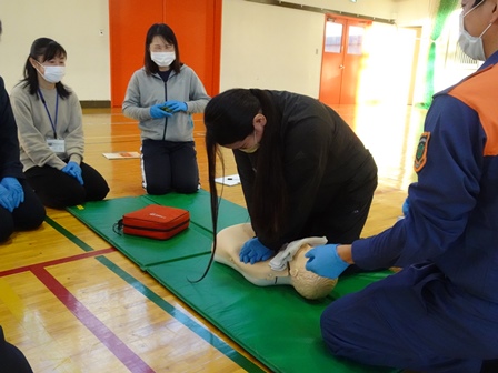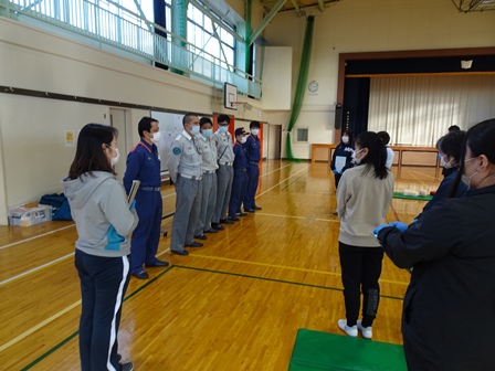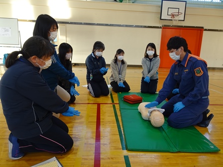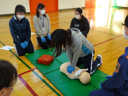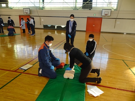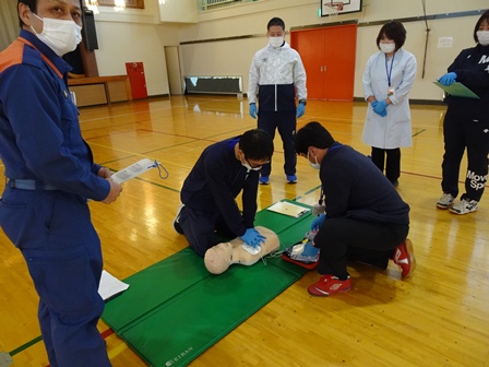 昨日放課後、救急救命講習を坂東消防署境分署の隊員の方に来て頂いて、先生方がAEDの使い方や救急救命の方法等について具体的な手順や方法の研修を行いました。