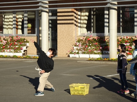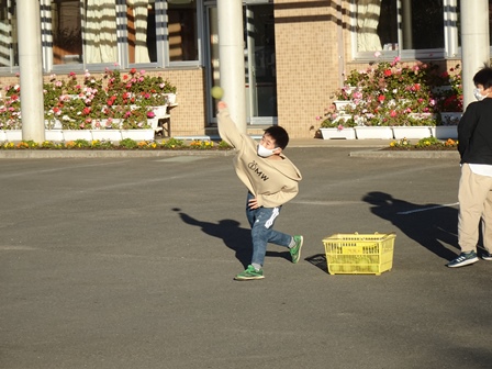 今朝もボールスローで始まりました。みんな投げるフォームがだんだん上手になっています。一人2球ずつですが、継続すると投げ方も良くなります。またどこまで投げるかの目標があるのも良い効果を生んでいる原因なのかもしれません。