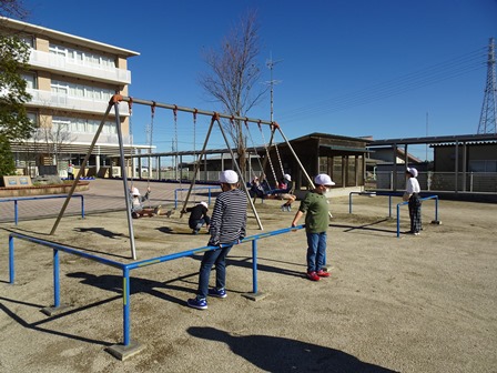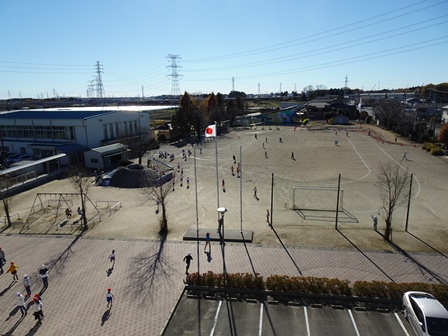 きょうは、だいぶ冷え込んでいます。でも子どもたちは元気に休み時間を過ごしています。校庭での風景です。