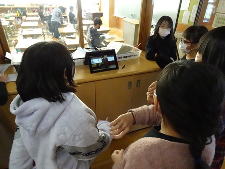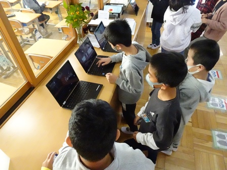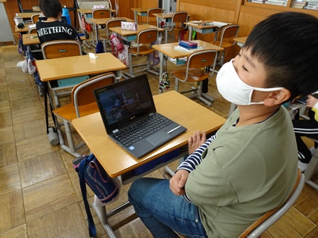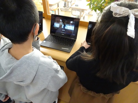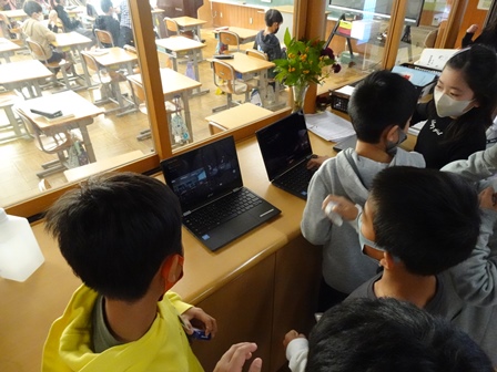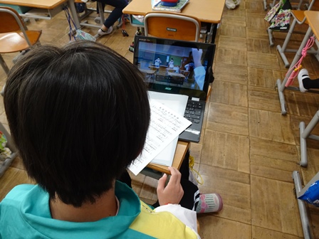 校舎内では、鼓笛のオーディションに向けてPCの動画(6年生のお手本動画)を見ながら練習をしている姿がありました。