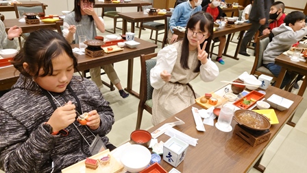 夕食の時間が来ました。みんな元気に食べています。みな元気です。
