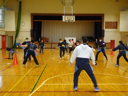 昨日、放課後先生たちは、体育の校内研修を体育館で行いました。フラッグフットボールといってなかなか面白い競技です。児童のみなさんにもできる新しい球技です。