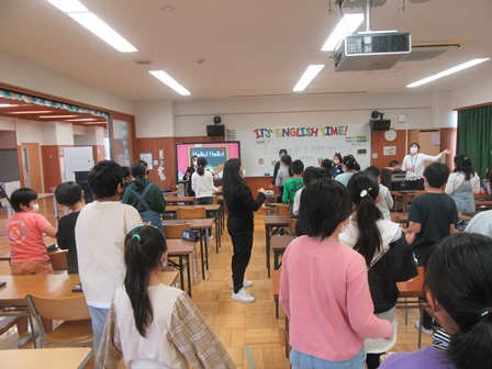 きょうは、神奈川県中井町の教育委員会から学校教育課長さんと指導主事の先生がSGS(英語活動)を視察に来られました。