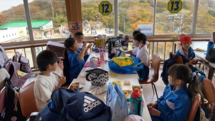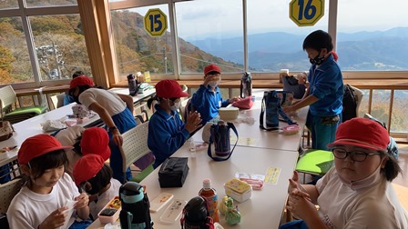 コマ展望台到着。まもなくお弁当になります。みんな元気のようです。