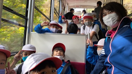 たくさんの思い出を作ってバスまで歩く。少し疲れも見えるようです。あとはバスに揺られて学校に向かいます。予定通り15:00頃には帰校出来そうです。