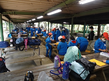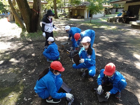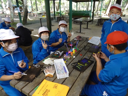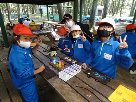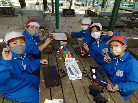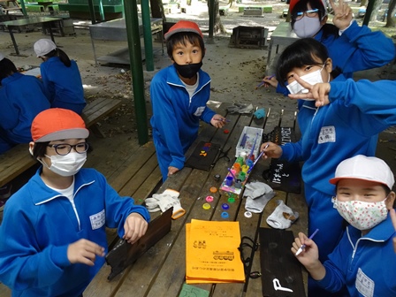 晴天の下、昨日までの強風も無く、焼き板づくりに挑む5年生のみんなです。