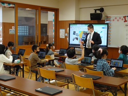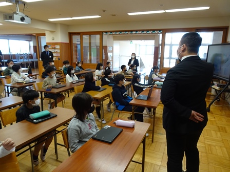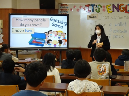 境町の各学校で行っているSGS(英語活動)について、大洗町教育委員会教育長長谷川 馨様、教育次長兼学校教育課長 高柳 成人様、学校教育課学校教育係 主事 横田千尋様が視察に来校しました。授業公開は4年2組です。