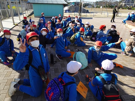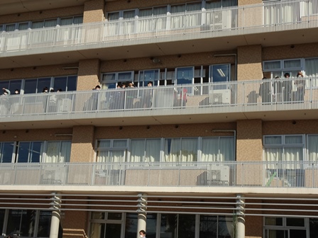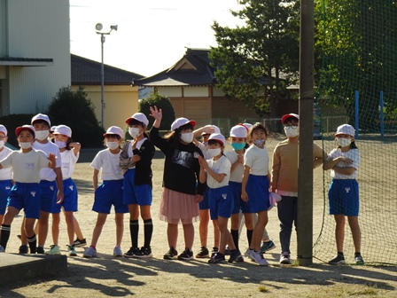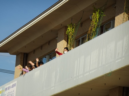 出発する時は、校舎のベランダや校庭にいたみんなから、「いってらっしゃい」の声をかけられました。みんなに見守られながら出発して行きました。