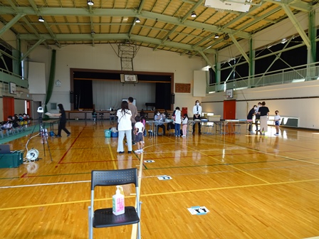 そして午後から健康診断が始まりました。体育館での受付の様子です。