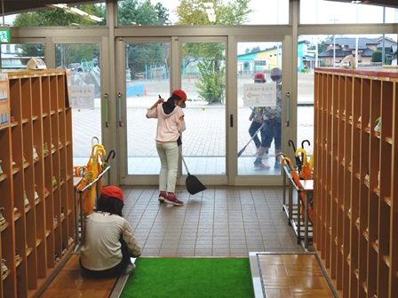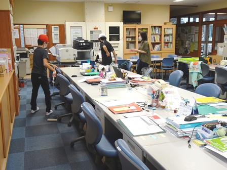 きょうは、清掃の風景。主に1階部分、職員室や廊下などの様子をお伝えします。