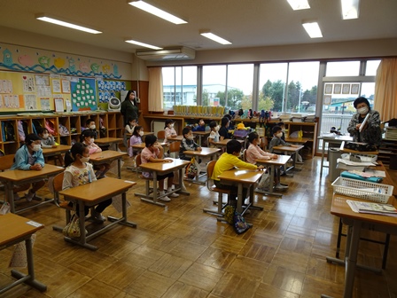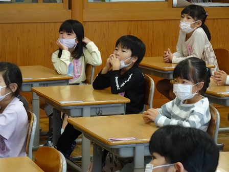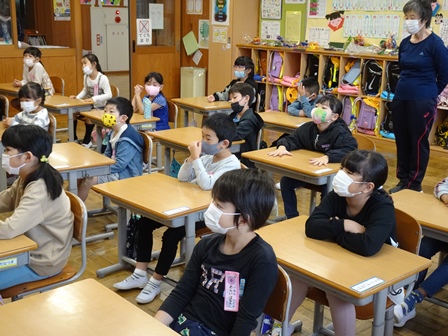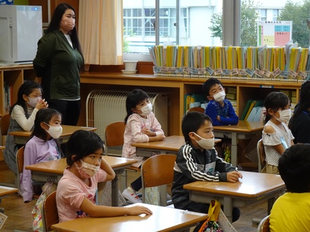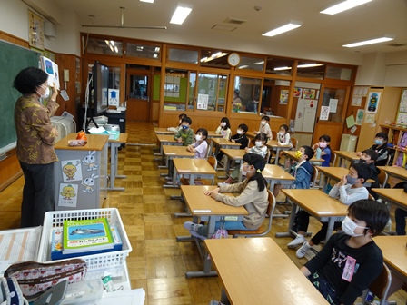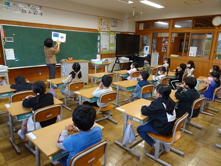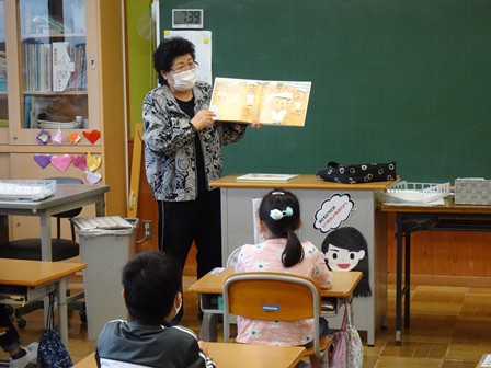 すばるの会による読み聞かせがありました。きょうは1年生対象です。みんな静かに聞いていました。