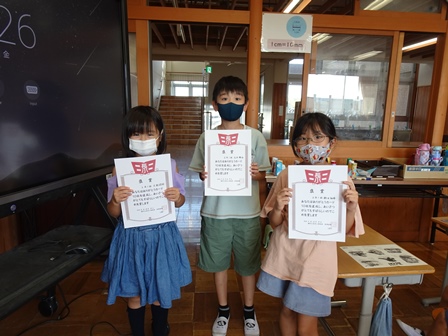 きょうは、前期の終業式でした。児童学年代表が前期をふり返っての作文を発表しました。Googlemeetを使ってオンラインで行いました。来週からは後期が始まります。