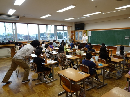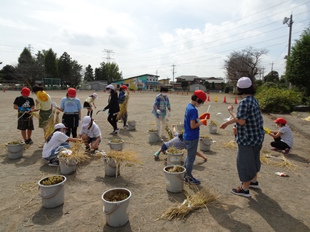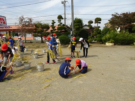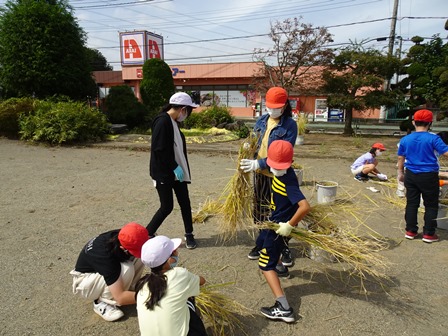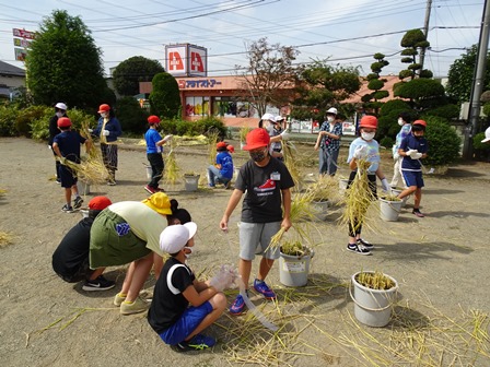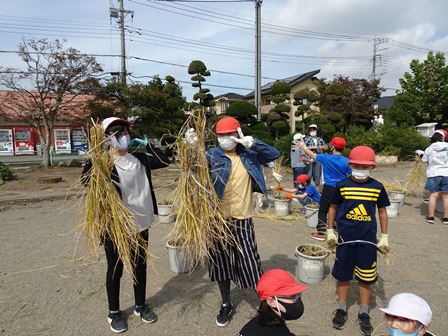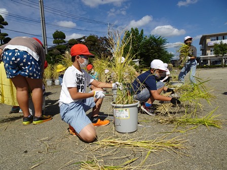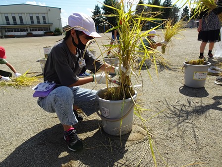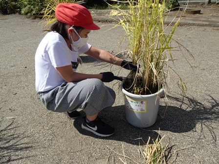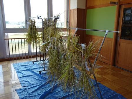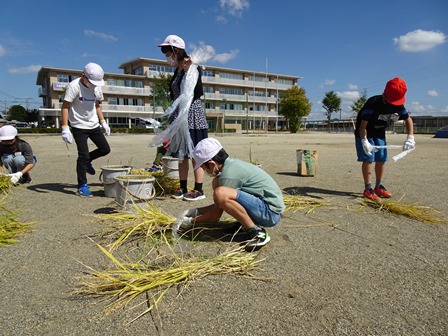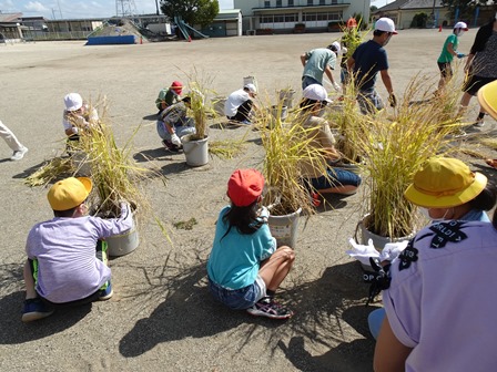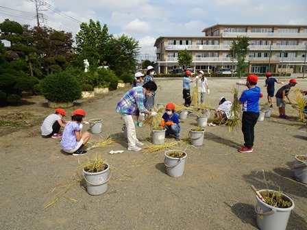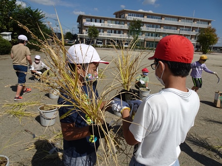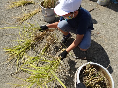 きょうは5年生が稲刈りに出かけました。秋田さんの指導で行いました。