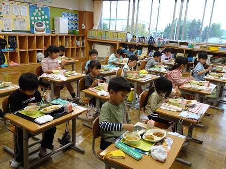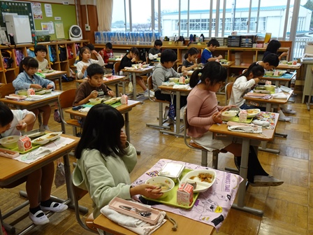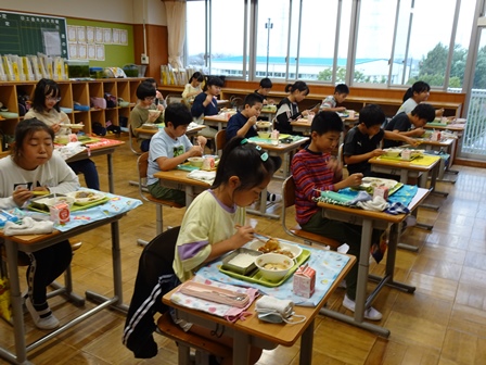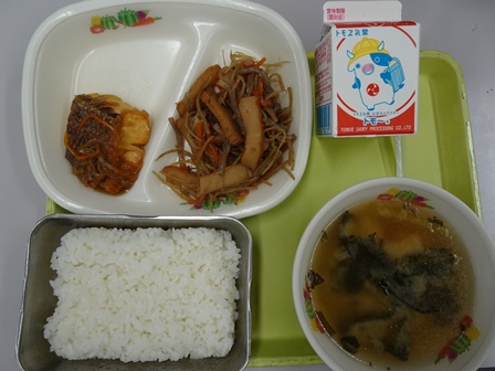 きょうの給食から・・・ごはん、牛乳、いわしの生姜煮、ヒジキの煮物、味噌汁でした。661キロカロリーでタンパク質は、27.5㌘でした。