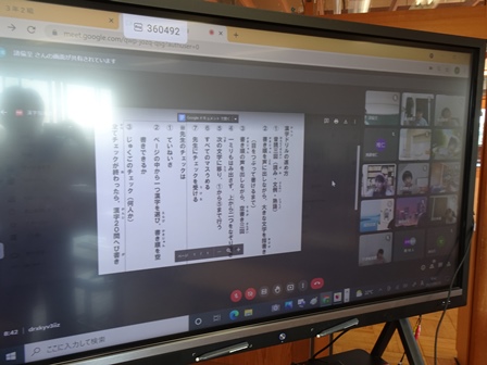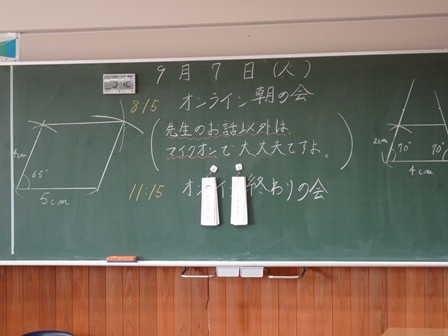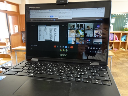 きょうも朝の会からオンライン学習が始まりました。きょうのオンライン率も非常に高いです。みな朝から参加してくれています。だいぶ慣れてきたようです。低学年のみなさんも「音読」などをオンラインで行っていましたね。