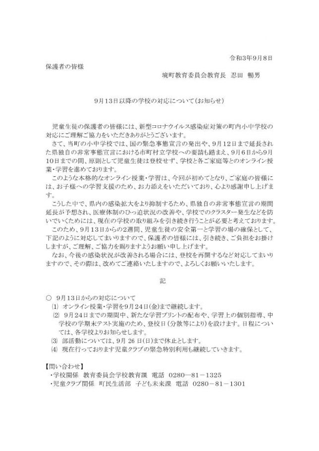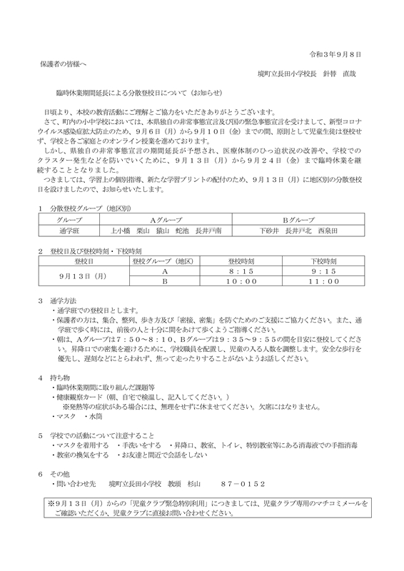 なおお知らせについては、このホームページ上にも掲載してありますので、ご覧下さい。