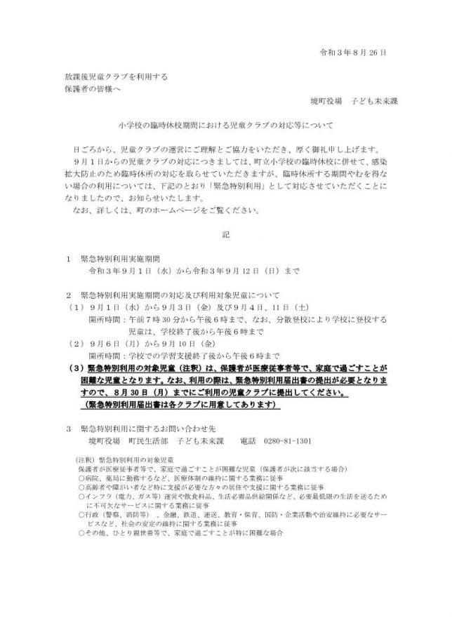 保護者の皆様へ 昨日マチコミで連絡しました内容です。
