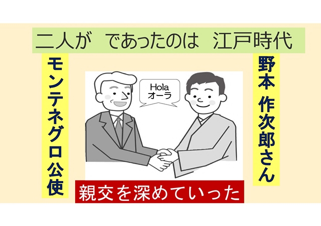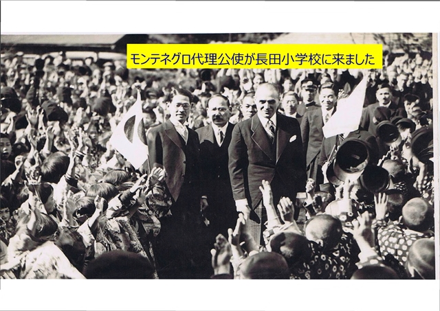 (昭和10年)モンテネグロ公使が野本家と長田小学校を訪問することとなった。地元は大騒ぎとなり、私がリーダーをしていた青年団は自動車でやってくる公使のために、道路に砂利をまいて車一台が通れる道を作った。なにしろ当時、村には電話も無く、自動車も一台あるだけだった。(竹之内 久校長の時)