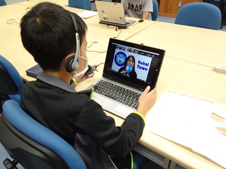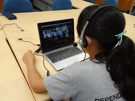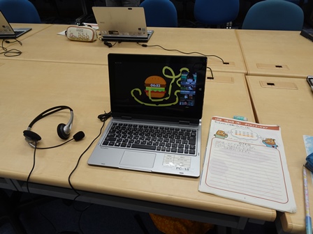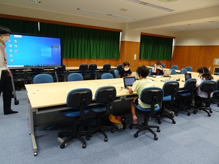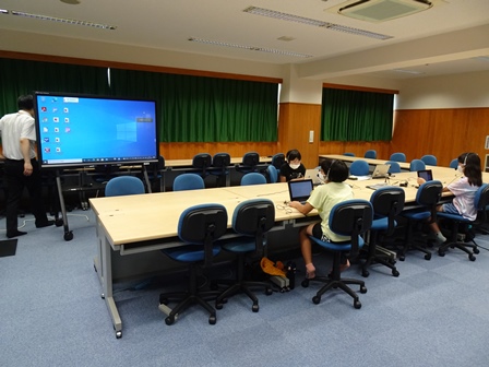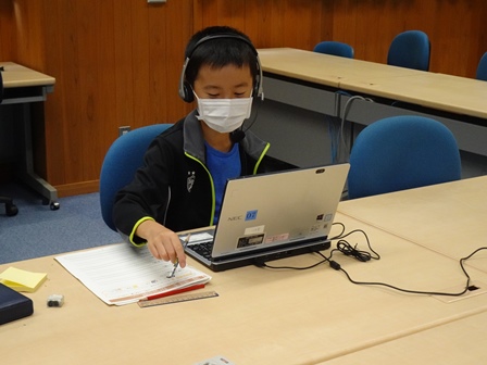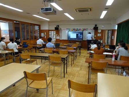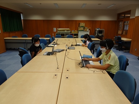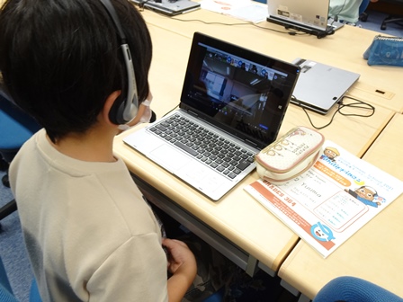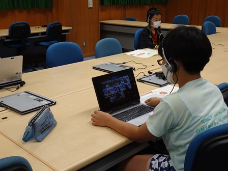 PC室では、英語サマースクールを行っています。自宅でオンラインで参加している児童もいます。