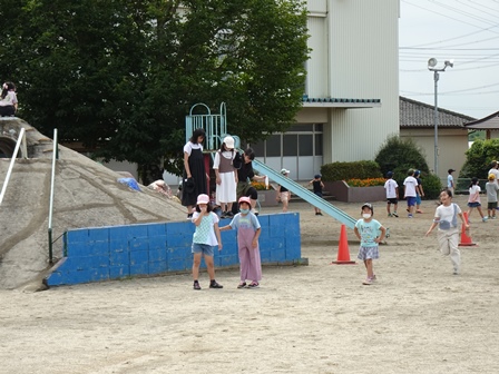 校庭では、学童クラブの子どもたちが元気いっぱい遊んでいました。