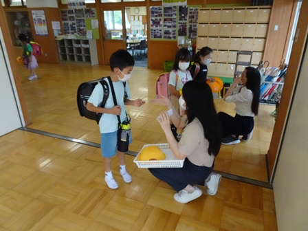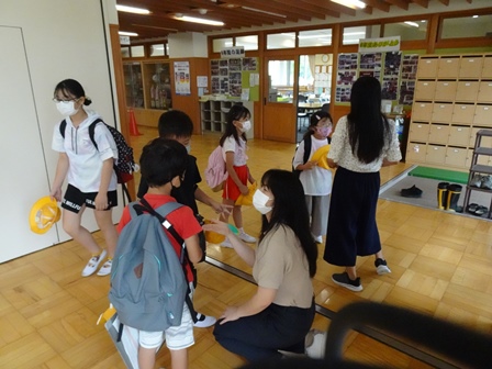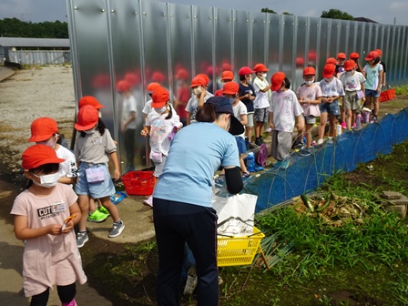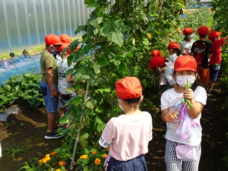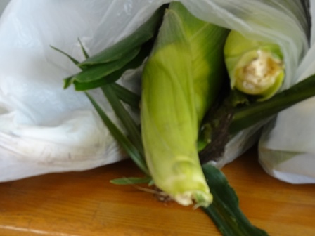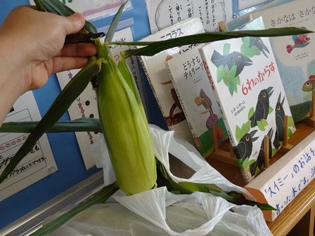 2年生が畑まで「トウモロコシ」の収穫に出かけました。たくさんのトウモロコシが収穫でき、満足そうに帰ってきました。一人一人きょうはおうちへお土産が出来たようです。