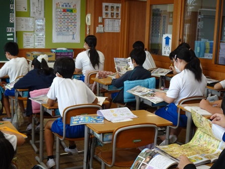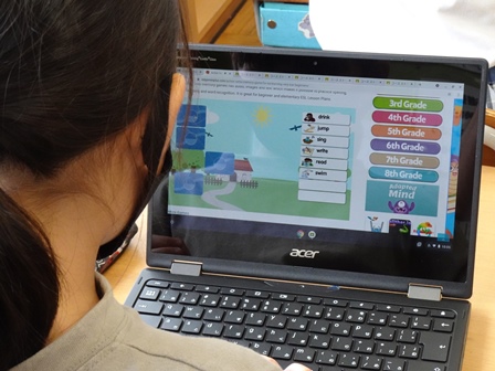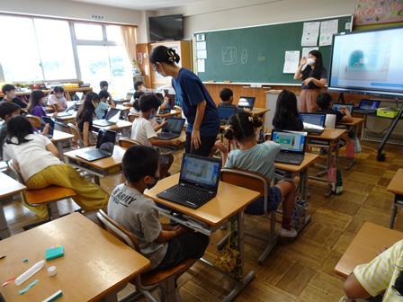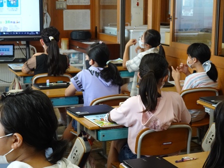4年生の授業から・・・1組さんは、英語の授業をPCを使って行っていました。