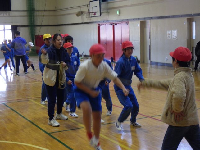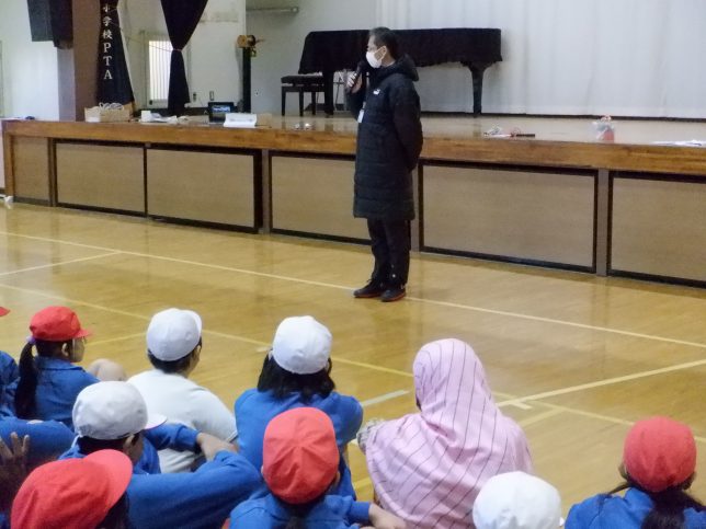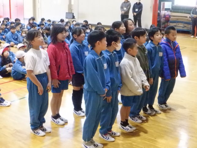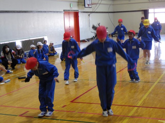 今日は子ども達のお楽しみのハッピータイムです。昼休みと掃除の時間を使って、学年の垣根を越えて楽しく遊びます。体育館では2年生と5年生がドッジボールをして遊びました。また、校庭では、寒さに負けず、大縄や鬼ごっこなど、元気に遊んでいました。