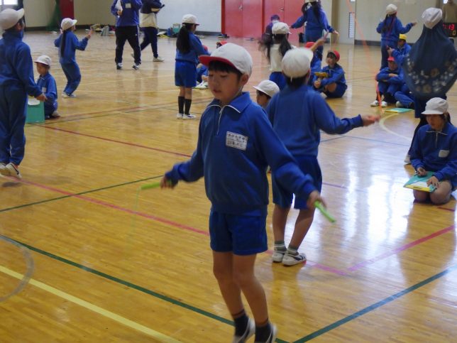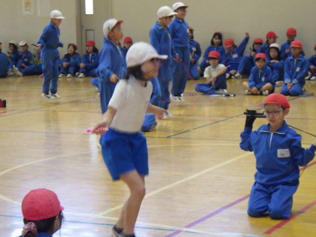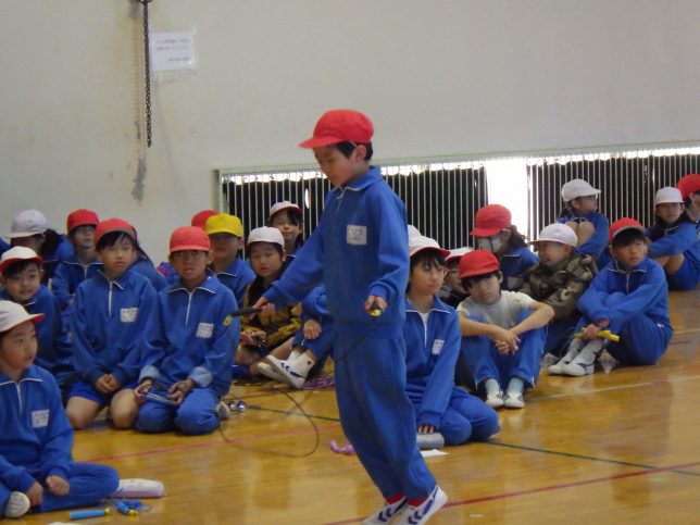 子ども達が楽しみにしていた縄跳び大会がありました。今年は個人の部の他に、クラス全員による「八の字跳び」にもチャレンジしました。「八の字跳び」の始まる前には、各クラス円陣を組んで士気を高めました。大変盛り上がった大会になりました。