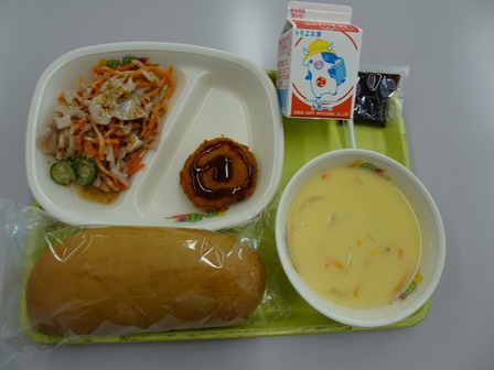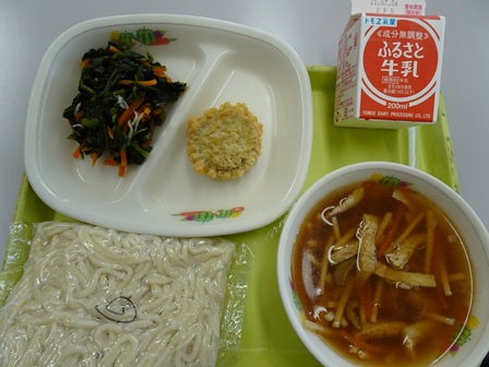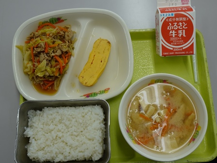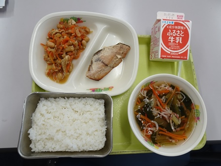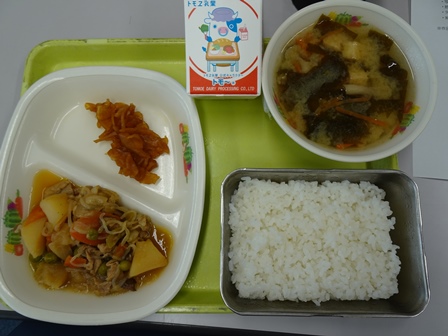 きょうの給食から・・・ご飯,牛乳,肉じゃが,味噌汁,壺漬けでした。624キロカロリーでタンパク質は,21.2グラムでした。