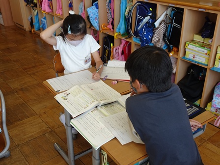 きょうの天気も変わりやすい天気でした。急に雨が降る場面もありましたが,みんなが帰宅する頃には上がりました。きょうの学校の風景は,3年1組さんのSGSの様子からです。きょうは,鉛筆を何本もっているかの表現でした。