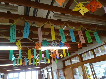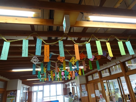 6年生の教室の前にはいよいよ短冊がさげられました。七夕ですね。いろいろな夢が掲げられています。