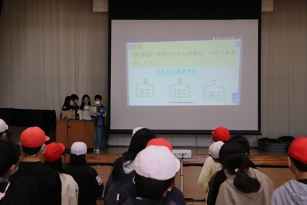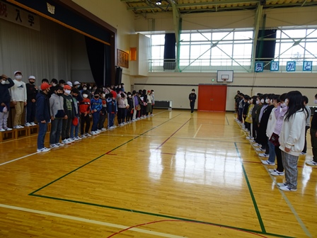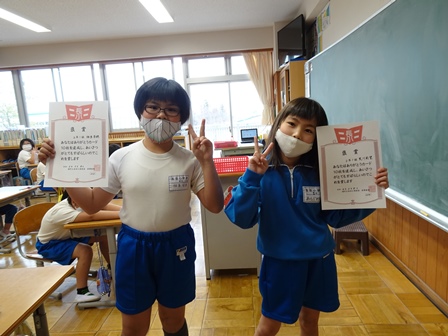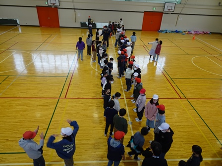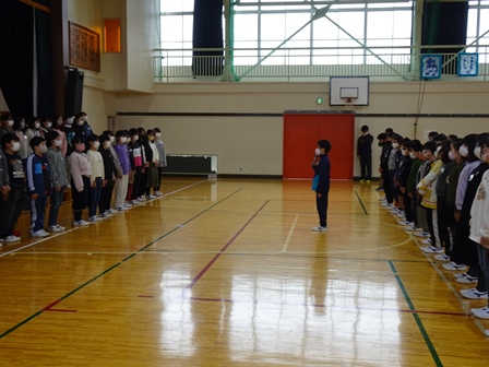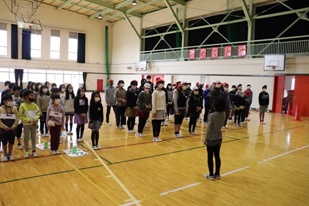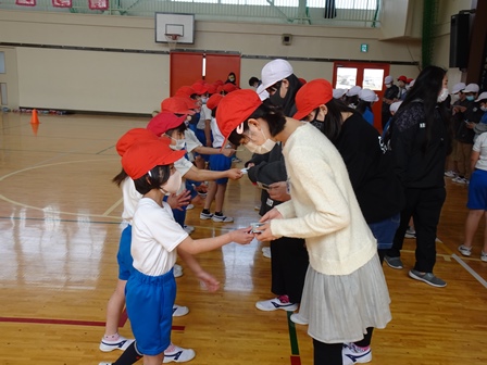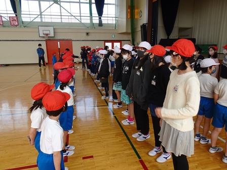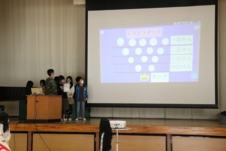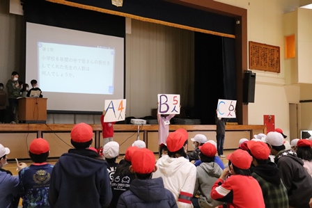 きょうは6年生を送る会の第1日目です。というのもコロナ対策のため、今年度は全学年で揃って実施せず学年ごとに体育館で行うことになりました。きょうは2年生と3年生が6年生と工夫した楽しい時間を過ごしました。2年生は最初にドッジボールで遊んでから、プレゼントを渡しました。3年生はクイズをだして楽しみました。