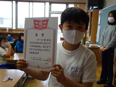 きょうのあいさつカード10枚達成者です。頑張りました。