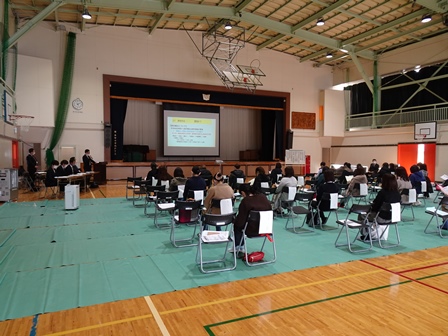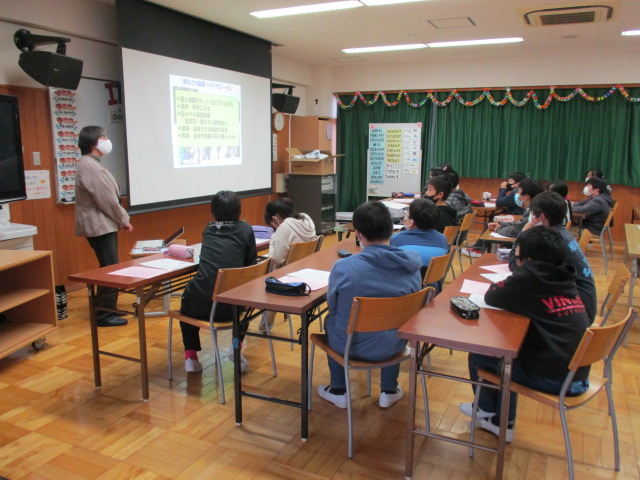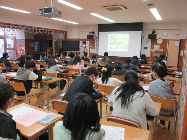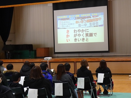 きょうは境第一中学校から来て頂いて、中学校の説明会を実施しました。もうすぐ中学進学を控えて、前半部分を保護者の皆様、後半は、児童も参加してお話を聞くことはできました。