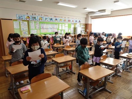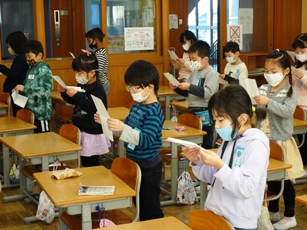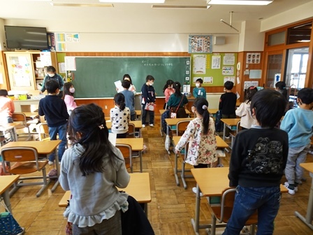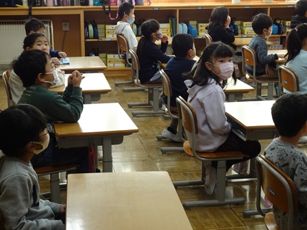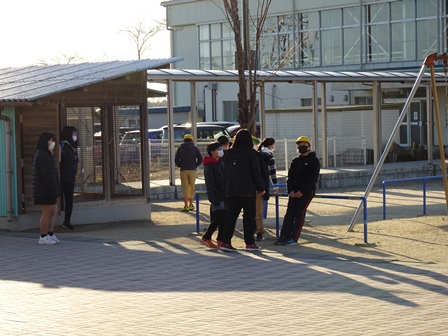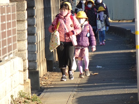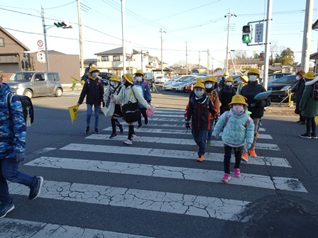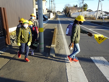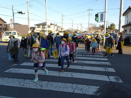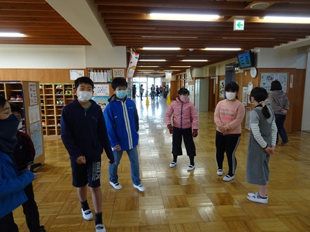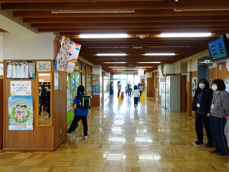 きょうは,学校の登校風景から紹介します。まだまだ寒い日が続きます。風の強い日もられば穏やかな日もあります。見守り隊の方々や地域の方にも見守られながらきょうも元気に登校です。