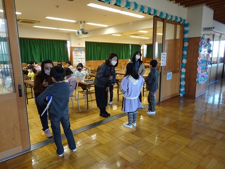 フロアでは検温や委員会活動を行ったり,先生方もみんなを出迎えたりしています。