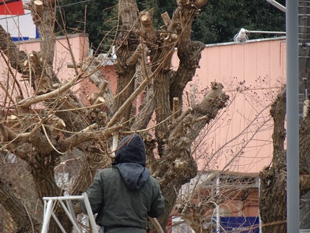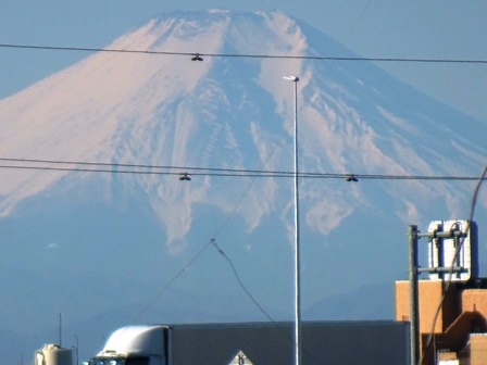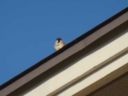 4階の屋根の上から・・・すずめもお出迎え。