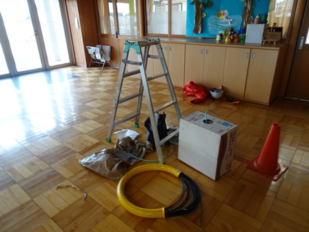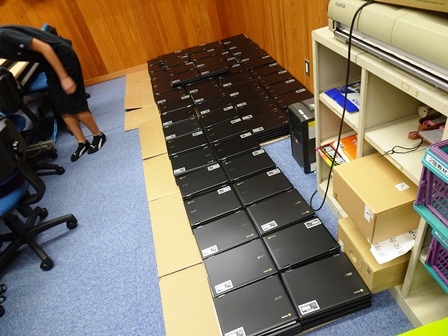 「GIGAスクール構想」一人1台のPCの設置に向けて,設定と工事が行われています。
