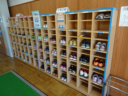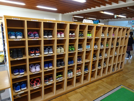 きれいに並んだ昇降口。みんな休まず登校していますね。