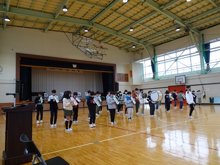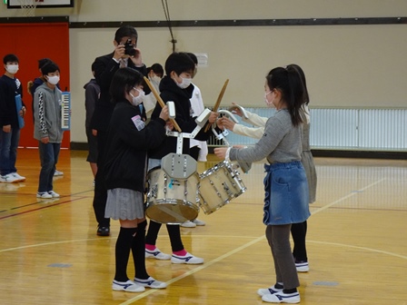 今朝、鼓笛引き継ぎ式が行われました。6年生は、いままで3年間頑張ってきました。しかし今年はこのコロナ禍の中、夏のパレードの中止、運動会はスポーツ大会での短縮した形での鼓笛となってしましました。しかし下学年のお手本となって本日引き継ぎを完了しました。