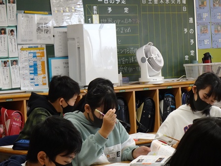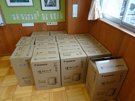 各教室に空気清浄機を全部で14台を設置しました。購入のため昨年実施した資源ゴミ回収の収益金、PTA準会員費を使用しました。子どもたちは、また一歩良い環境で学習できると思います。PTAの皆様、地域の皆様有り難うございました。これで加湿器、サーキュレーターと3つが揃いました。