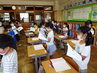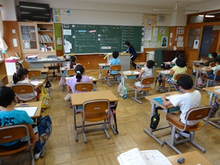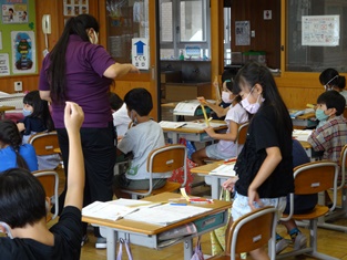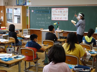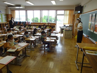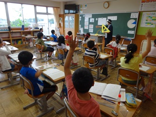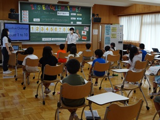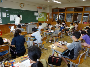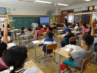 5年生からは「英語活動」の様子です。中学生並みの発音を楽しく学習。小学生で学べるのですからうらやましい限りです。