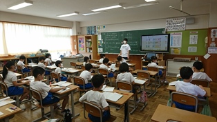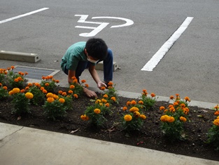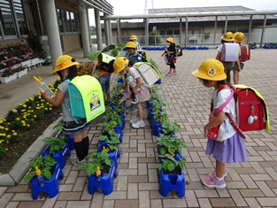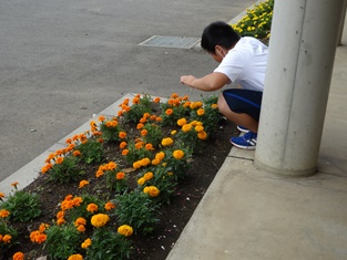 きょうは梅雨の中休みのような一日でした。朝いつものように3年生が水やりをやっていました。そのそばで「ひまわり」が咲き始めました。なんだかとても夏を感じました。きょいも元気です。朝のあいさつ運動も頑張っています。マスクをしてのあいさつはけっこう暑いです。三階の教室のベランダ(ちょうど4年生の教室前)にはゴーヤの花が咲きはじめました。確実に夏に向かっている今日この頃です。