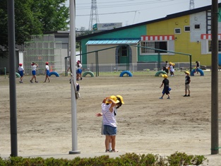 業間の休み時間はみんな外で元気にあそびました。業間は,1,3,5年生で昼休みは2,4,6年生です。
