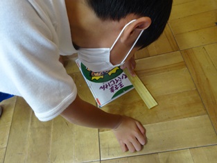 2年生がものさしを使って,長さを測る学習をしていました。正確に何㎝何㎜を測っています。
