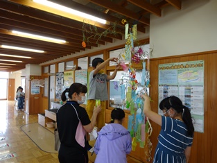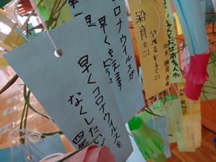 4年生が七夕飾りを作っていました。こうれも長田小では恒例です。子ども達の願いが書かれています。将来の夢だったり,ほしいものだったり・・・今年はコロナウイルスをなくしたいという願いがありました。同感です。本当にはやくふつうの安全なくらしに戻りたいですね。この願いは多分人類共通の願いでしょう。